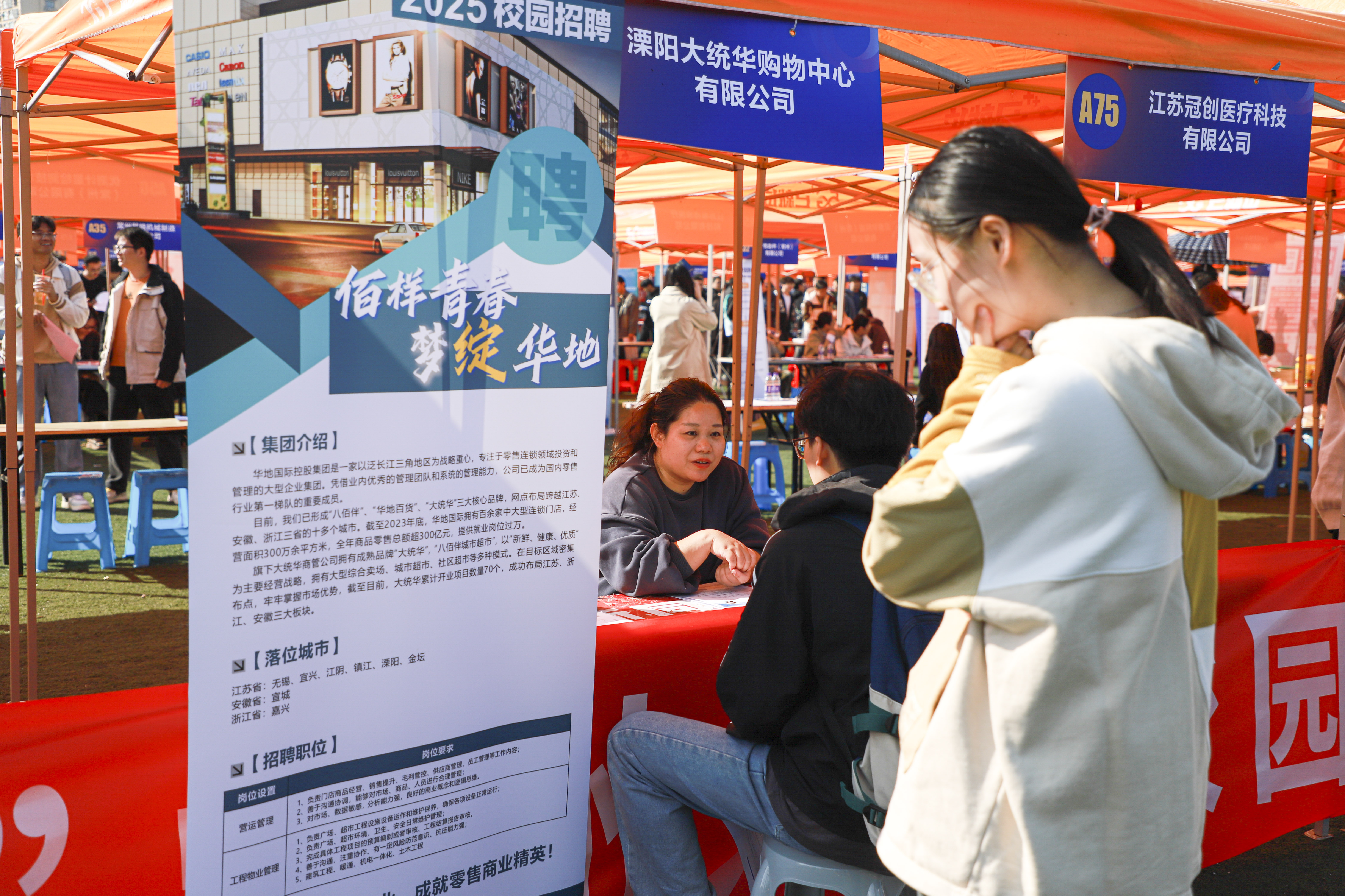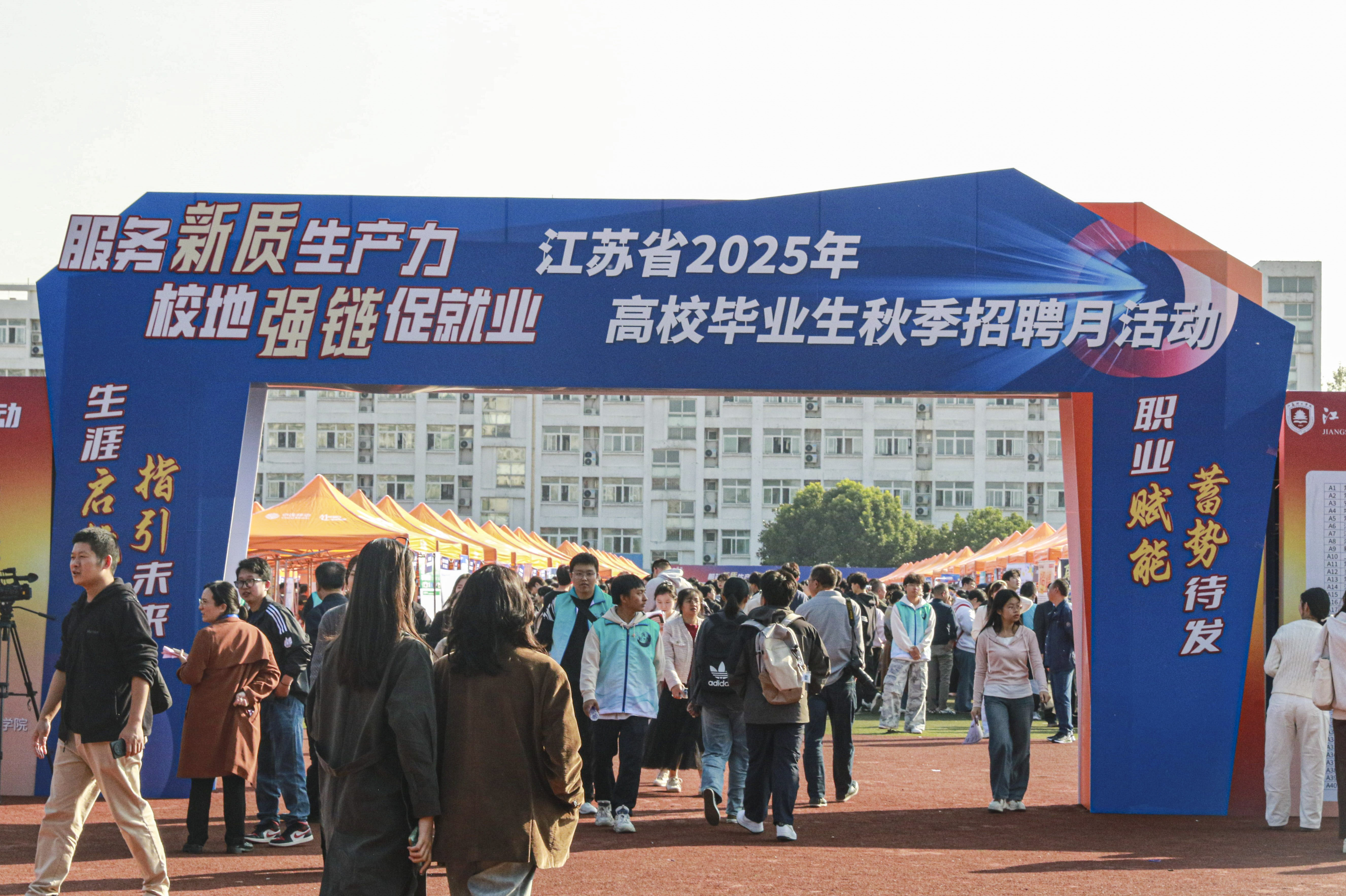 10月23日,江苏理工学院秋季专场招聘会在学校南苑田径场举办,350余家各行业优质用人单位携8000余个岗位前来参会引才,近6000名毕业生应约到场求职应聘。校领导崔景贵、贝绍轶、俞亚萍、王志华、范洪辉现场与用人单位、参会毕业生交流。