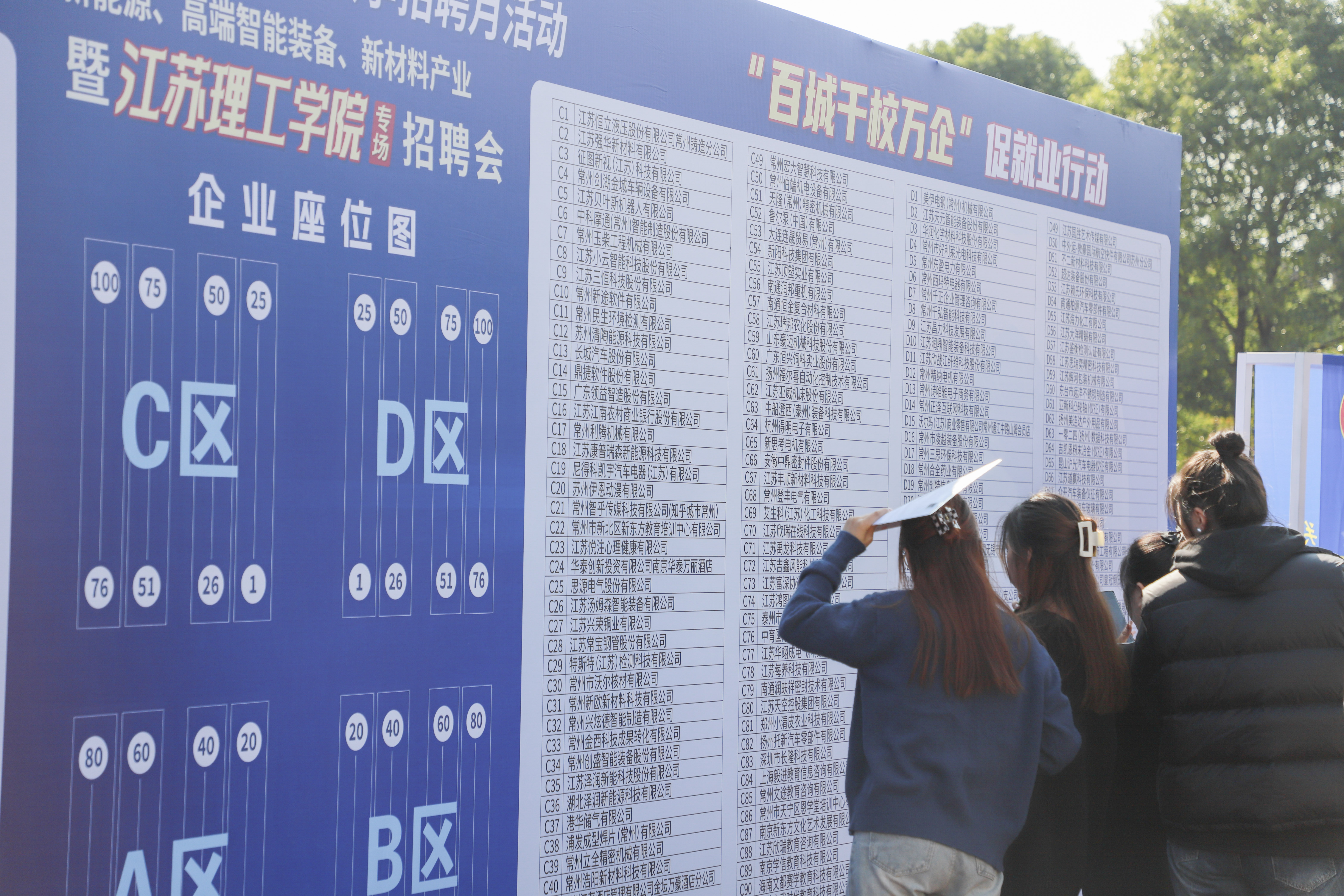 招聘会以“服务新质生产力 校地强链促就业”为主题,挖掘先进制造业集群和重点产业链用人需求,推动校地、校企产教融合,精准对接学生就业发展,提供的岗位涵盖新能源、高端智能装备、新材料等领域。参会企业中有40%是员工人数超过千人的大型企业,20%为上市企业,其中包含蔚来汽车、星宇车灯、今创集团、常州常发制冷科技有限公司、江苏君华特种高分子材料股份有限公司、万帮数字能源股份有限公司、蜂巢能源科技有限公司等多家常州新能源龙头企业。常州市人社局、武进区人社局等周边13家人社局共同参与招聘会,为毕业生们带来了多样化的就业机会。