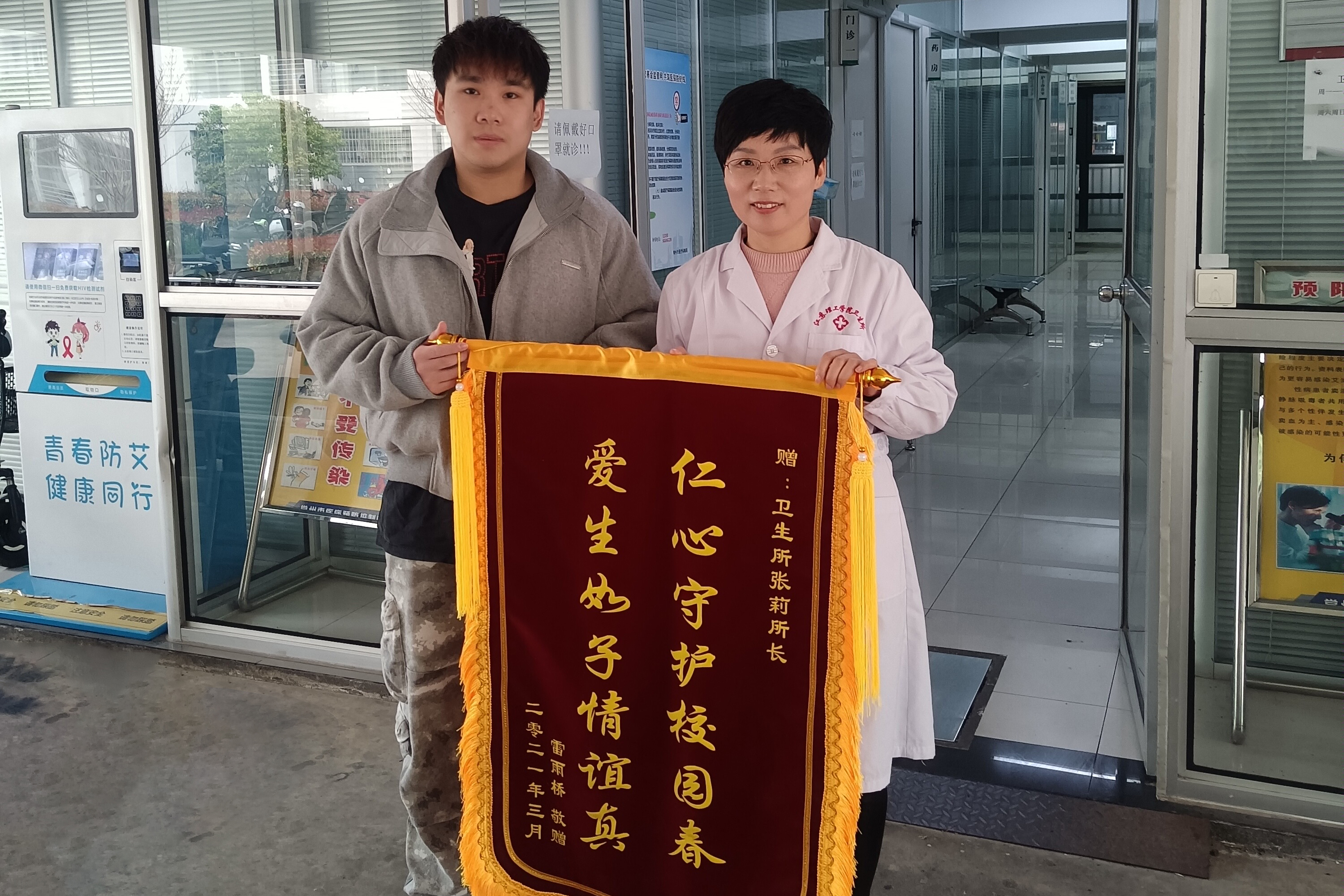 2021年的一天,某学生因胃痛来卫生所就医。经了解得知,三天前三甲医院医生建议其进行胃肠镜检查,但因疫情防控,胃镜室每日接诊人数受限,检查需排到一个多月之后。彼时学生腹痛难忍,但父母远在四川,学生倍感痛苦与无助。听闻此事后,张莉立刻放下手中事务,几经周折,成功为学生预约到一天后的胃肠镜门诊,并亲自带领学生辗转于各个科室,完成各项镜前检查。考虑到学生晚上服用清肠药后会频繁上厕所,既影响舍友休息,又担心学生住在上铺上下床不安全,她便把学生接到自己家中住宿,第二天一早亲自带着学生去医院,并联系专家为学生进行针对性治疗。最终学生的胃溃疡因及时有效医治,症状很快得到缓解。学生父母感动不已,不远千里寄来锦旗——“仁心守护校园春,爱生如子情谊真”,这14个字正是张莉全心全意无私奉献的最好证明。