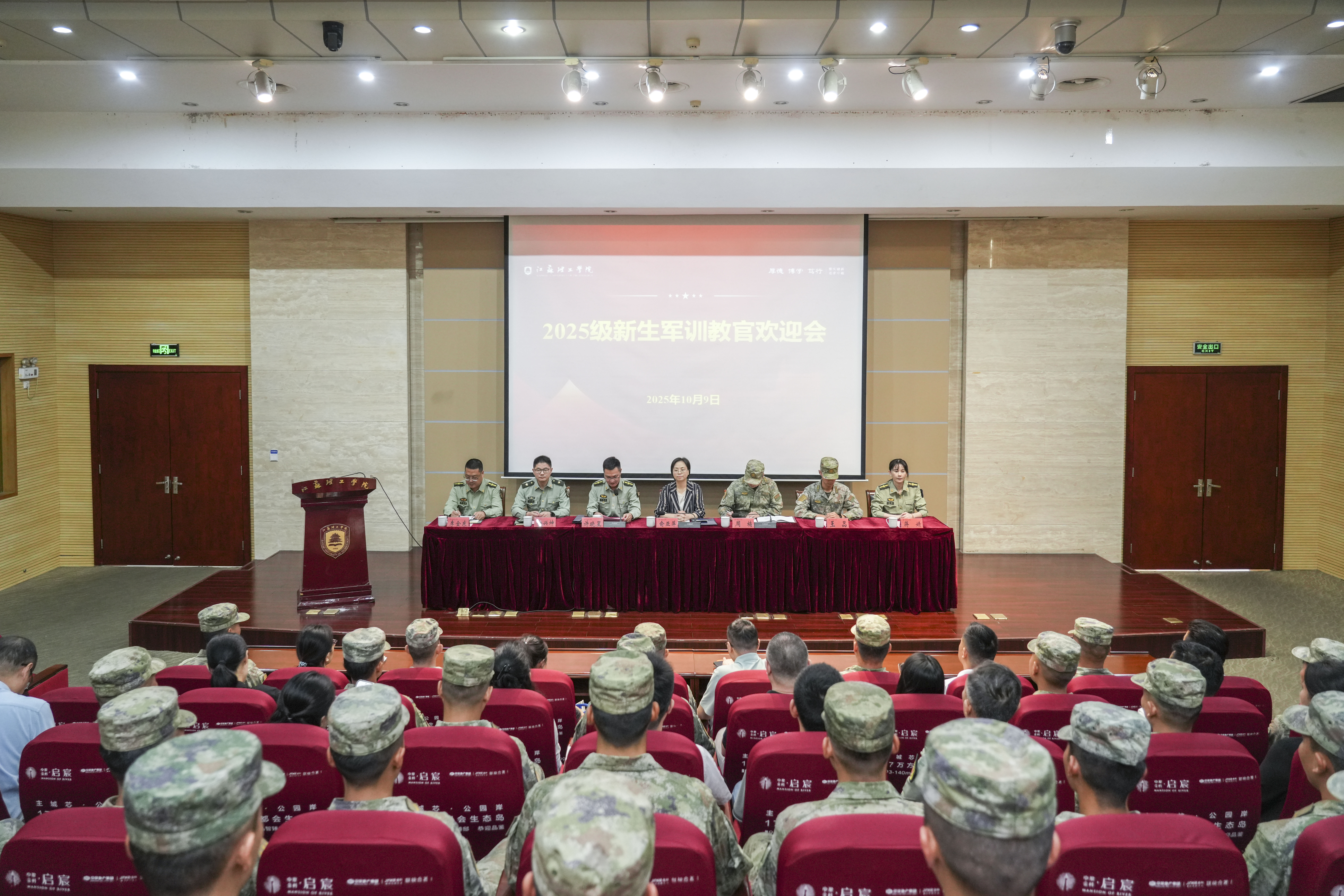 10月9日上午,我校在图书馆南报告厅举行2025级新生军训教官欢迎会。党委常委、副校长俞亚萍,承训部队首长周楠及全体教官,校人民武装部负责人,各学院分管学生工作副书记、新生辅导员及班主任代表参加会议。