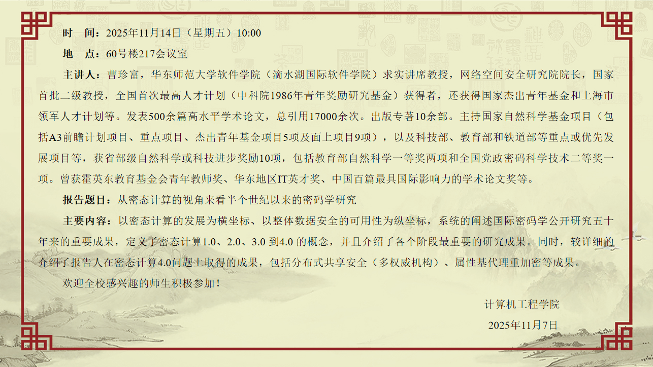 11月14日:从密态计算的视角来看半个世纪以来的密码学研究