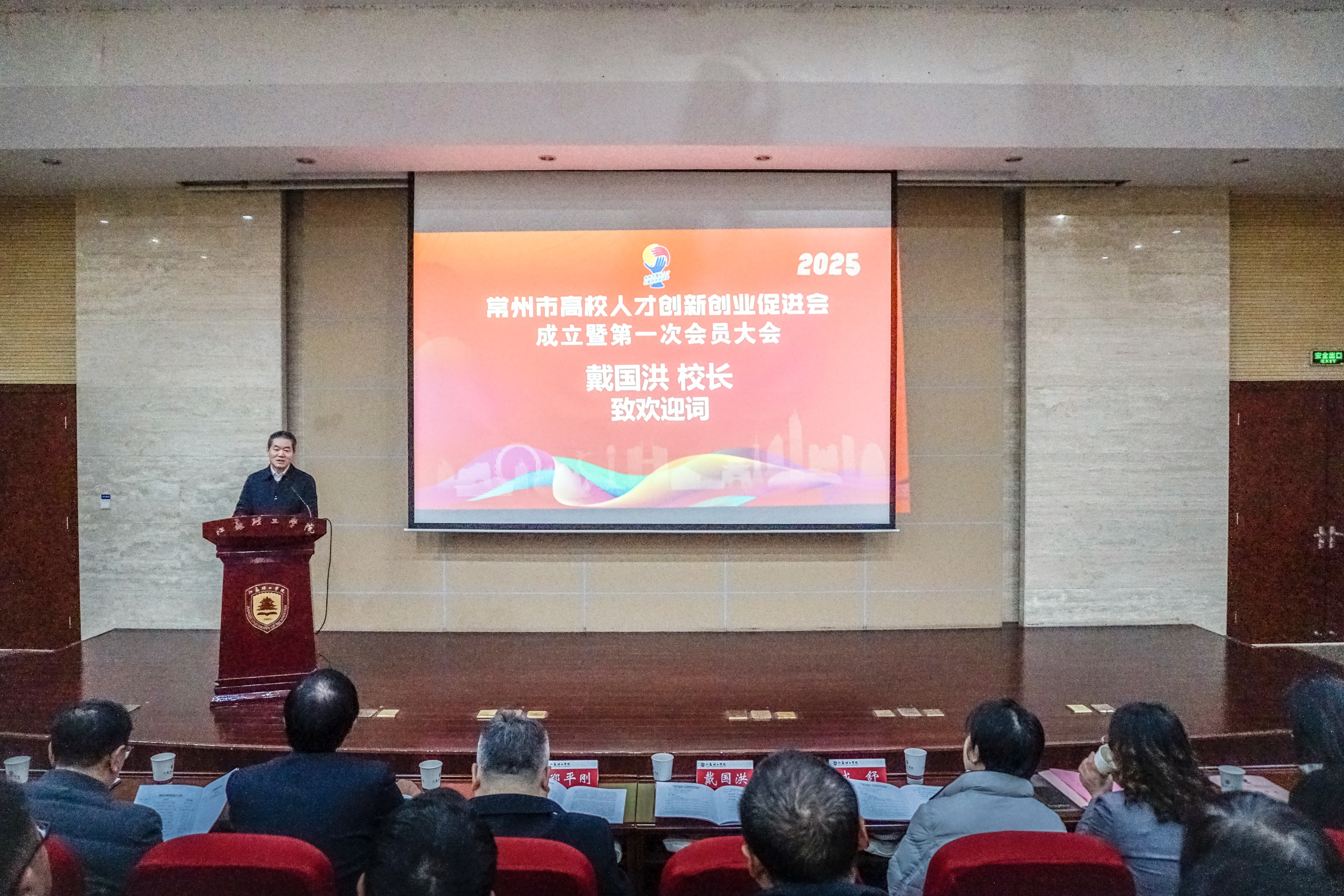 12月20日上午,常州市高校人才创新创业促进会成立暨第一次会员大会在我校图书馆报告厅举行。校党委副书记、校长戴国洪,常州市民政局、科学技术协会等单位相关负责人,校友工作办公室负责人以及各高校常州校友会代表参加会议。