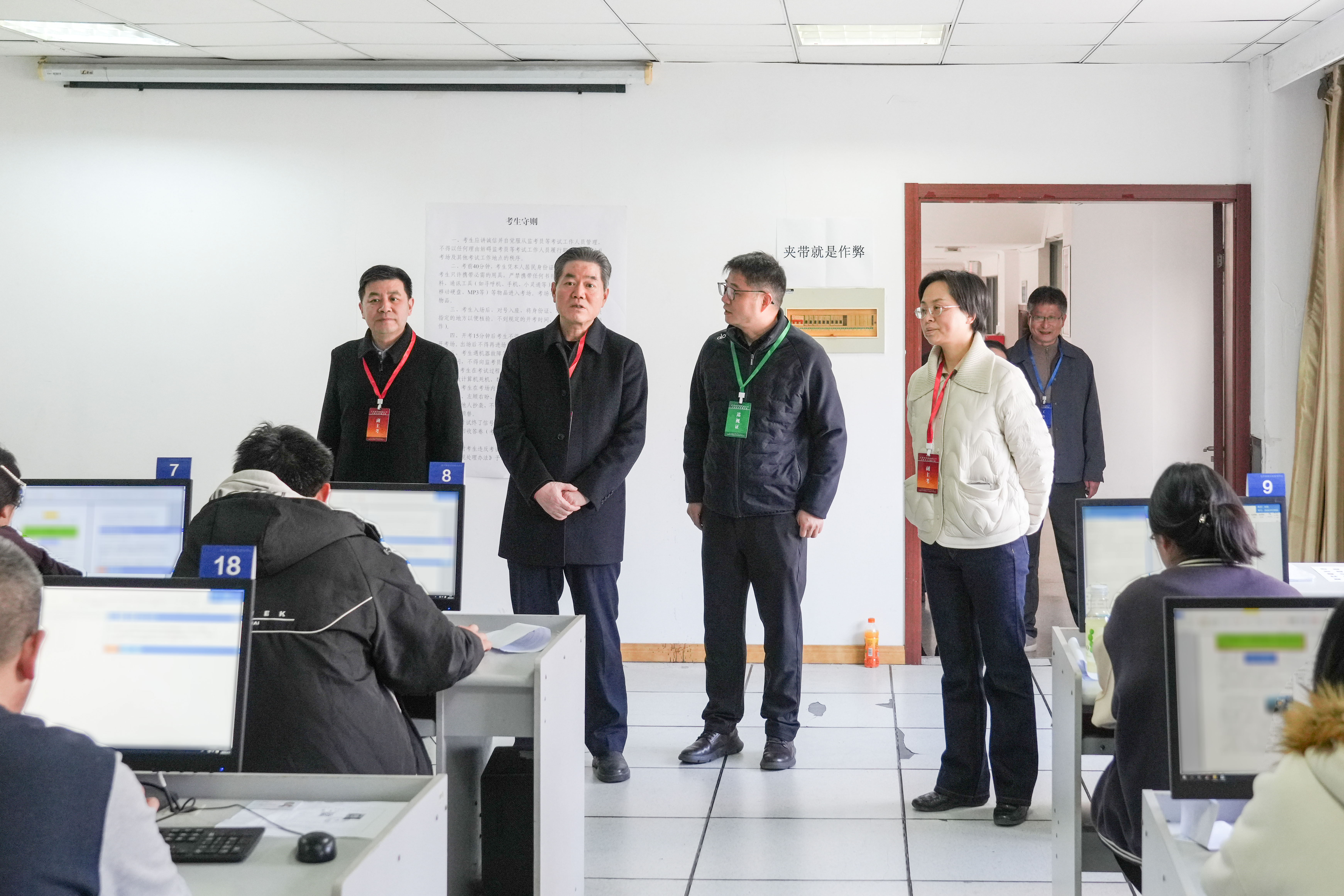 学校高度重视此次职教高考技能考试,牵头联考委多次召开专项协调会议,细化完善考务实施方案,明晰各方职责分工,对命题保密、考场编排、阅卷评分等关键环节实施全流程闭环管控,严守考试质量与安全防线。考试期间,校党委副书记、校长戴国洪,党委常委、副校长俞亚萍、方亮带队深入各考点巡查督导,逐项检查考试组织、纪律执行、服务保障落实情况,现场协调处置难点问题。校领导强调务必严守考务规范、筑牢安全底线,为考试平稳有序开展提供了保障。