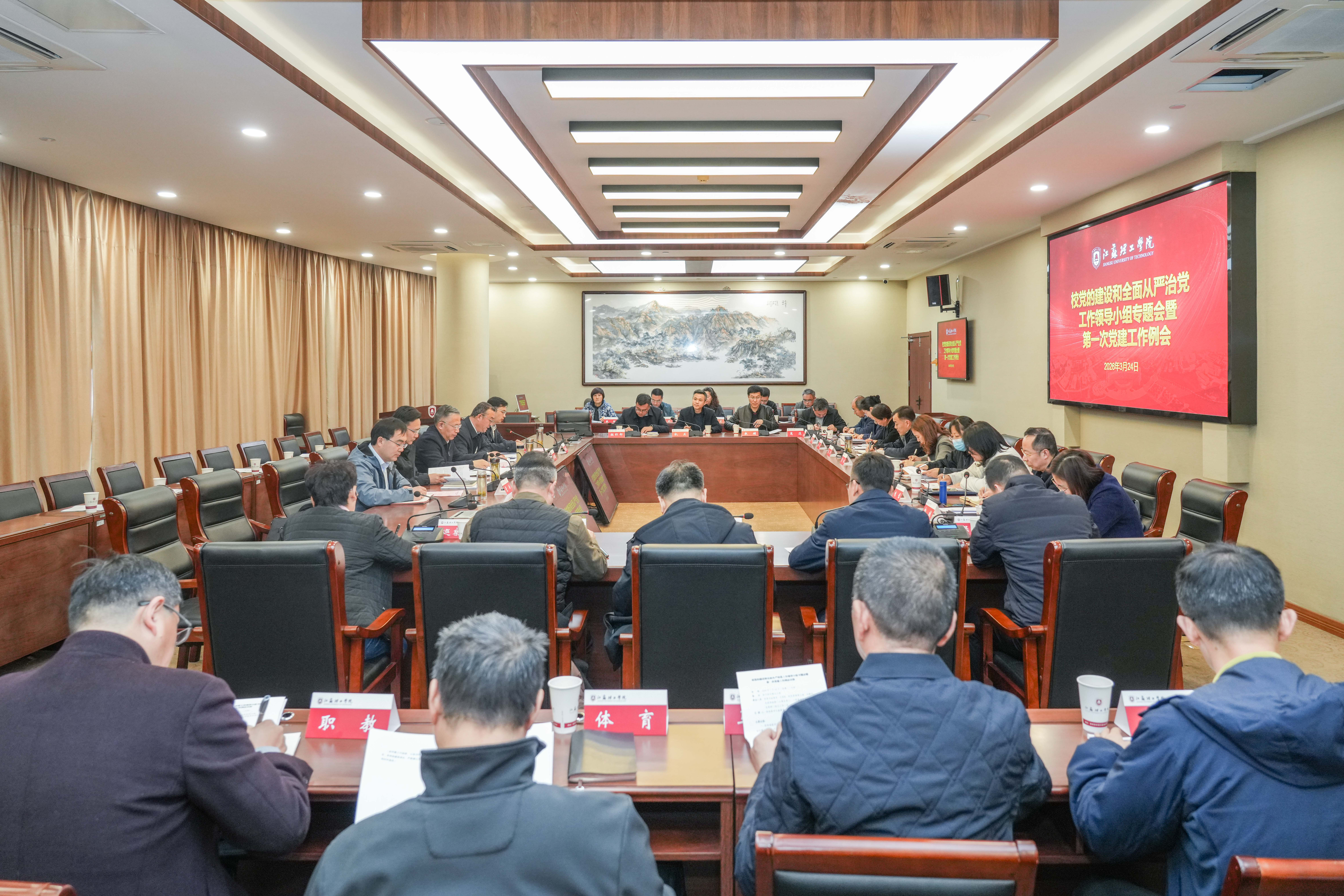 3月24日上午,我校在图书馆四楼会议室召开党的建设和全面从严治党工作领导小组专题会暨第一次党建工作例会。校领导崔景贵、贝绍轶,党委常委王斌、刘晓杰,党委职能部门主要负责人、二级基层党组织书记、党委部门相关工作人员参加会议。会议由学校党的建设和全面从严治党工作领导小组组长、校党委书记崔景贵主持。