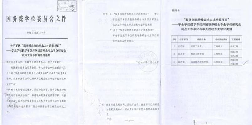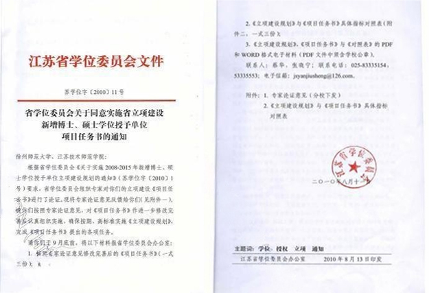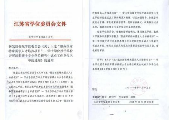 (1)批文(苏学位字〔2011〕18号)、(学位〔2011〕69号)
