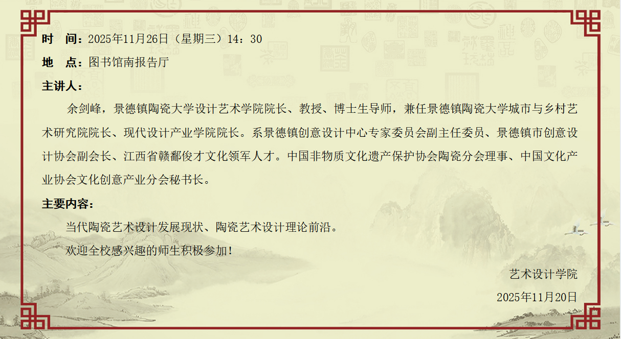 11月26日:“海粟大讲堂”第五讲:中国当代陶瓷艺术设计