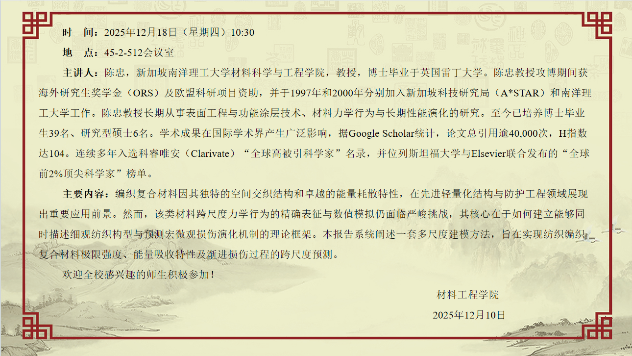12月18日:编织复合材料力学行为的跨尺度模拟