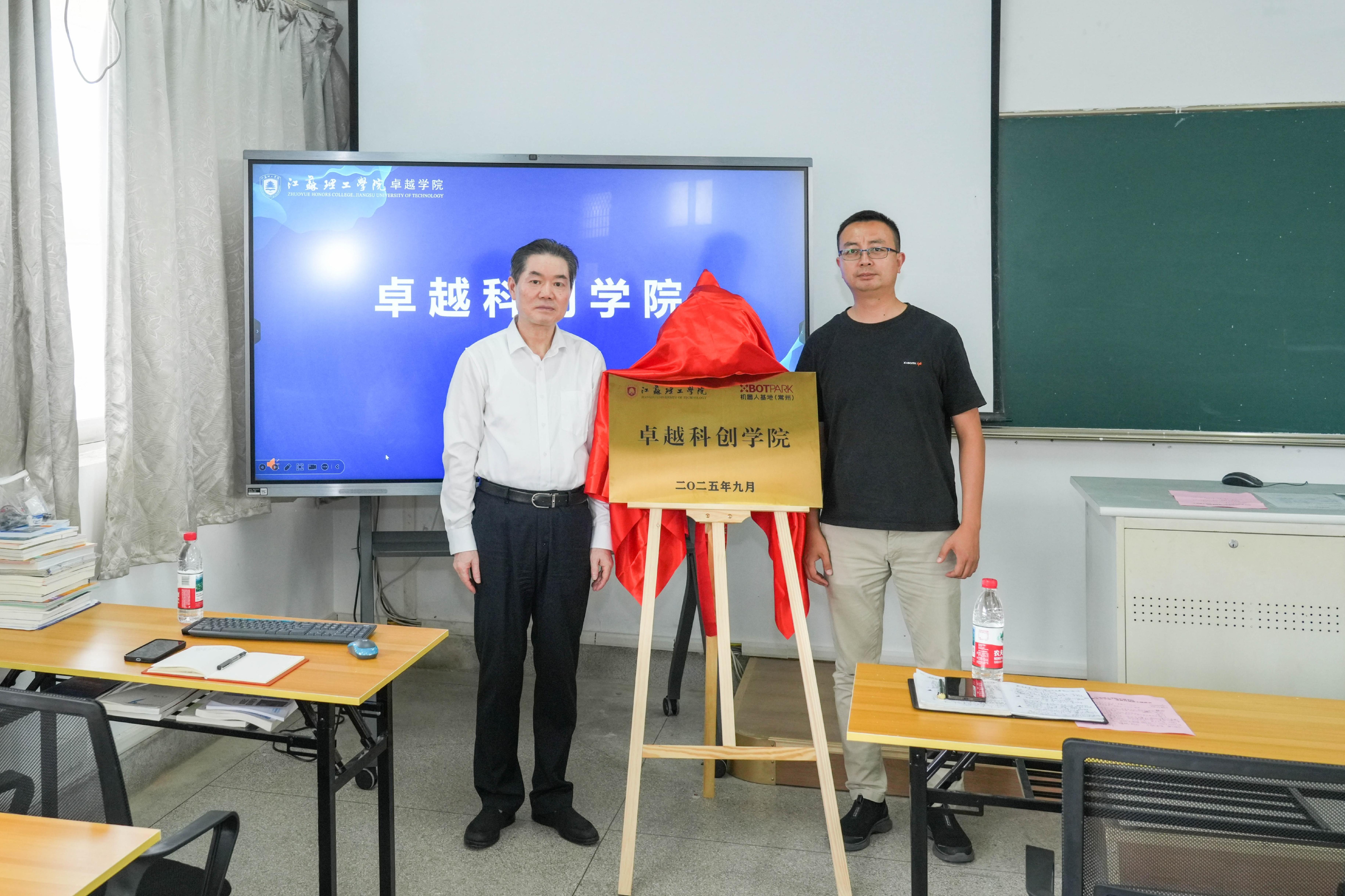 9月26日,我校举行与XbotPark机器人基地(常州)共建卓越科创学院揭牌仪式暨卓越学院2025级新生开学第一课。校党委副书记、校长、卓越学院荣誉班主任戴国洪,党委常委、副校长王志华,XbotPark机器人基地(常州)负责人王豫平,卓越学院相关负责人、新生辅导员及全体新生参加活动。戴国洪以“荣誉班主任”的身份对同学们加入江苏理工学院大家庭表示热烈欢迎,并为全体新生讲授题为《追求卓越 向新而行》的“开学第一课”。他勉励新生同学以厚德涵养家国情怀,以博学拓宽跨学科视野,以笃行践行知行合一。他指出,卓越学院依托交叉学科与项目实践,致力于培养具备“硬科技”能力的卓越人才;青年学子要在真实项目中锤炼本领,在创新探索中积蓄力量,在家国使命中实现青春价值。王豫平为同学们作“源自XbotPark体系的‘新工科’人才培养”主题报告。他详细介绍了新工科人才培养模式,并结合自身多年的创新人才培养和创业孵化经验,讲解了以互联网和工业智能为核心,涵盖机械装备、人工智能、电子信息等的新工科专业课程体系,全方位解答新工科人才培养的问题。仪式上,戴国洪和王豫平为“卓越科创学院”揭牌。(图/张姚;文/卓越学院 史渊艺